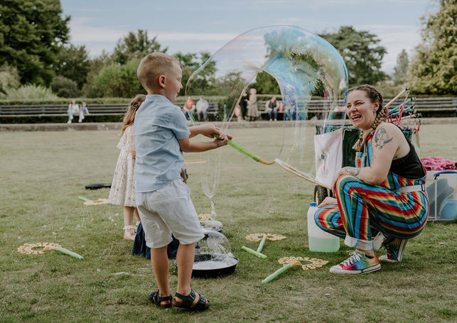 Whats not to love about Bubble Shows, loved by all ages, We make Giant bubbles and eye catching bubbles of all shapes and sizes that float gracefully through the air, captivating and mesmirising audiences, Our Bubble shows are enchanting and bring Joy to everyone who watches, we also offer interactive bubble sessions where you can get involved and learn to make your own marvellous giant bubbles.